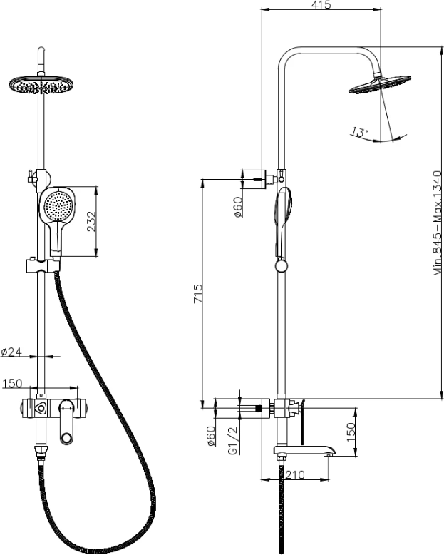 - Тип душа: