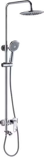 В комплекте 1- режимная душевая лейка, 1-режимный тропический душ, изготовленный из современной прочной пластмассы с никель-хромированным покрытием, душевая штанга раздвижная, держатель душевой лейки поворотный, душевой шланг с латунными гайками 150см, смеситель, индивидуальный пакет, паспорт, гарантийный талон.