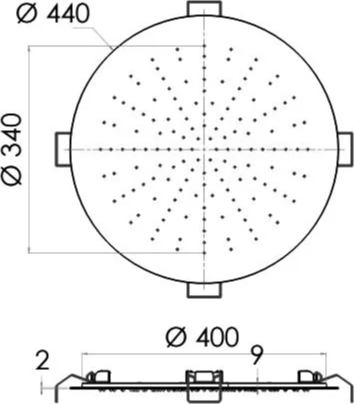 - Размер верхнего душа, см: