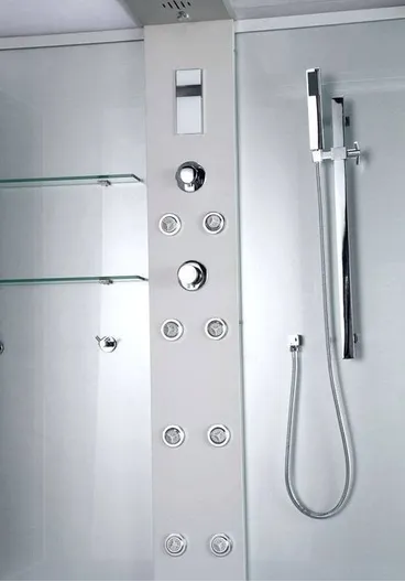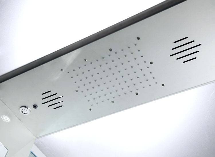 Смеситель имеет несколько режимов работы. Верхний душ полностью имитирует тропический ливень и может переключаться в контрастный режим. Для отличного отдыха предусмотрен вертикальный и раздельный спинной гидромассаж. На страже вашего здоровья и комфорта станет опция озонирования, а вентиляция – поддержит внутри комфортный микроклимат.
