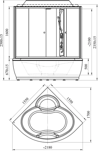 Данная модель выполнена в традиционном белоснежном цвете, оснащена ударопрочными стеклянными дверцами и имеет угловую компактную конструкцию овальной формы. За счет такой конструкции бокс способен разместиться в помещении достаточно компактно. При этом в одном изделии Вы получите и полноценную ванну, и душевую, и даже массажный комплекс. В этом и есть основное преимущество боксов перед обычными душевыми кабинками и ваннами. Перед сном для полного расслабления Вы сможете принять релаксационную ванну, успокаивающую и умиротворяющую тело и психику. Чтобы взбодриться и настроиться на предстоящий день, Вы можете воспользоваться гидромассажным душем.