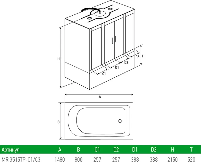 Душевой бокс Mirwell™ MR3515TP-C3-RUS 148х80