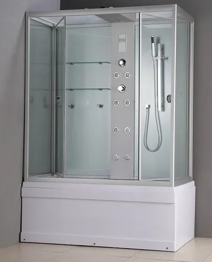 - экран, полки, душевой гарнитур, смеситель каскад, пульт ДУ