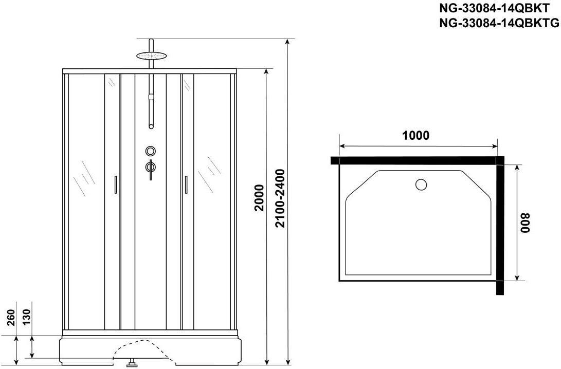 Гидромассажная кабина Niagara Classic NG-33084-14QBKTG 100х80 УТ-00148405