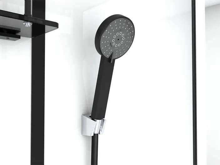 | • Санитарный акрил • Быстрая сборка без силикона • Черный матовый, анодированный алюминиевый профиль • Металлические ролики • Закаленное стекло Pilkington OptiWhite™ • Крыша из закаленного стекла • Раздвижные двери 6 мм • Боковые стекла 5 мм • Задние стекла, высокого качества «Super White», 5 мм • Крыша, стекло высокого качества «Super White», 5 мм • Полка для душевых принадлежностей • Латунный смеситель • Гидромассажная панель 720х125 мм • Тропический душ 265х225 мм • Ручной душ 2 функции • Душевой шланг с защитой от перекручивания • Высота поддона 150 мм, цвет серый |