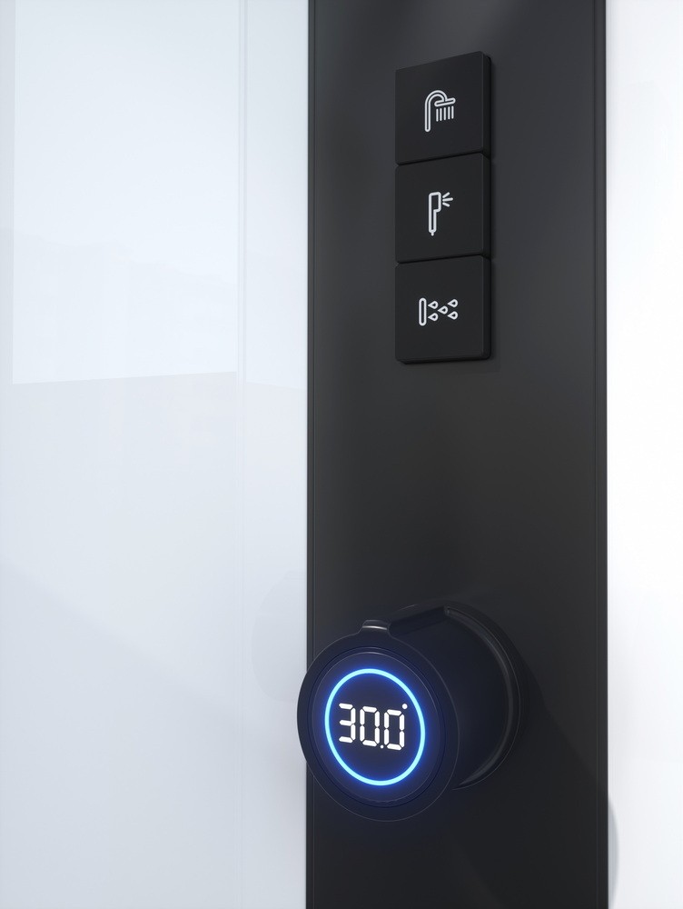 - С индикацией температуры воды (индикация работает от набегающего потока воды, подключение к внешнему источнику питания не требуется).