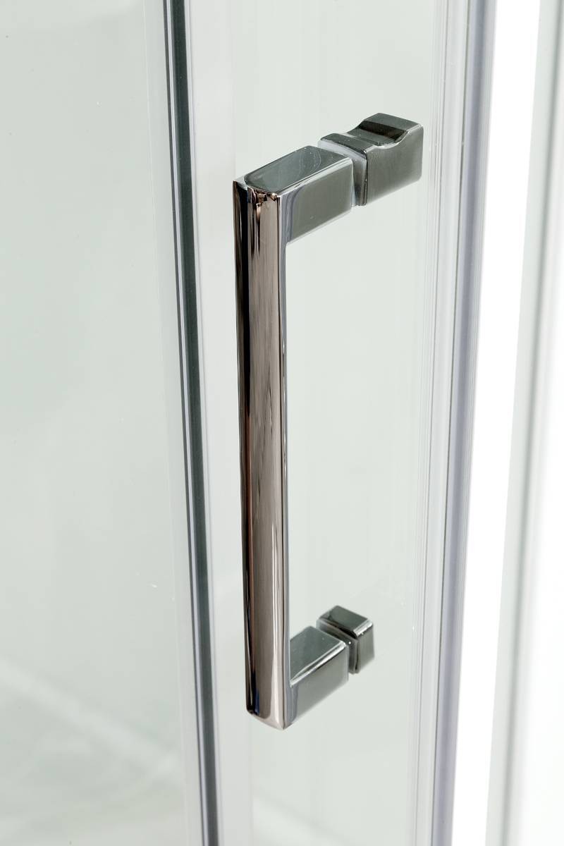 Зеркало интегрировано в заднюю стенку душевой кабины, блогодаря чему исключается вероятность корозии