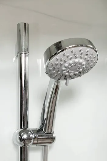 Душевая штанга с регулировкой лейки по высоте и ручная лейка с силиконовыми форсунками с функцией переключения режимов