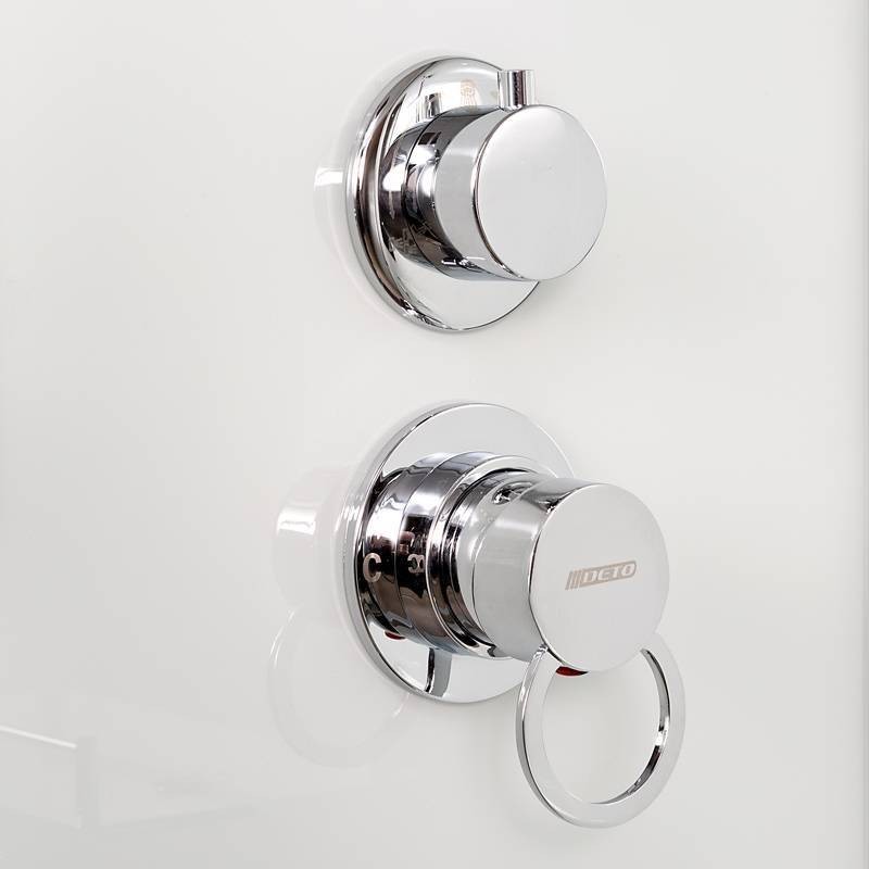 - сифон, полки, душевой гарнитур, каркас, смеситель, душевая лейка, радио, зеркало, поддон, шланг для душа, подсветка, верхний душ