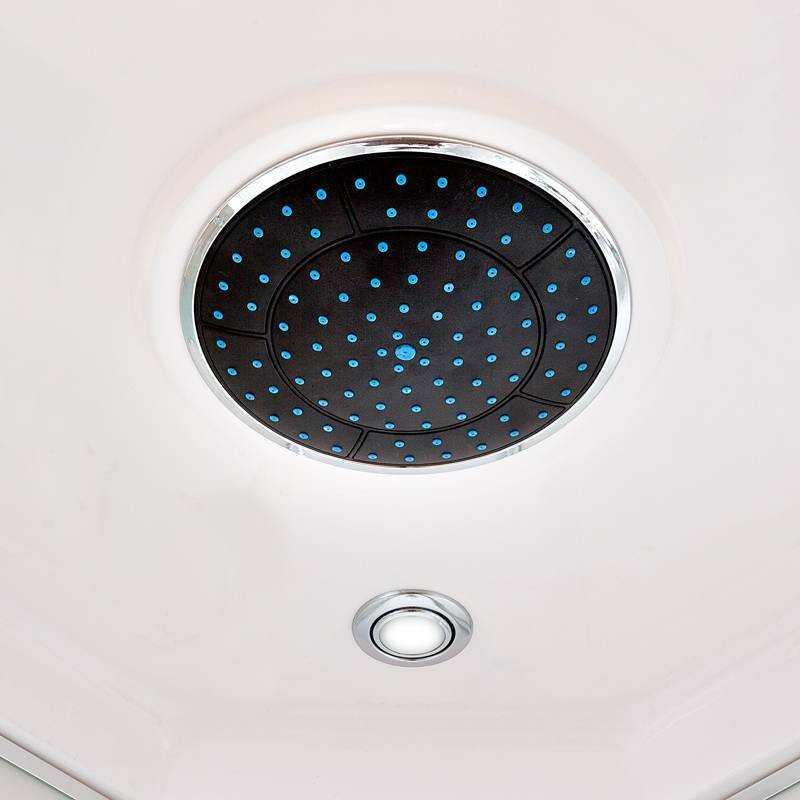 | Монтаж душевой кабины осуществляется без использования силикона Латунный смеситель с керамическими картриджами и резьбовыми соединениями 100% акриловый поддон с дренажными отводами высотой 15 см, усиленный металлическим каркасом с вставкой из антибактериального полимера Матовое безопасное закаленное сверхпрочное стекло толщиной 5 мм с рисунком и антикальциевой обработкой Душевая штанга с регулировкой лейки по высоте и ручная лейка с силиконовыми форсунками Шланг 1,5 метра Anti-Twist (не скручивается). Поворот шланга 360* Верхний и ручной душ оснащен системой Easy Clean Бесшумные двойные ролики из нержавеющей стали Донный клапан с системой клик-клак с гидрозатвором Крыша с тропическим душем и вентиляцией Зеркало и две стеклянные полки с ограничителем Хромированные ручки Сенсорный пульт управления FM - радио Вентилятор Свет всторенный в крышу |