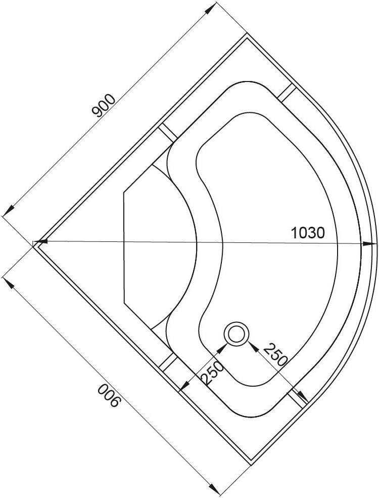 100% акриловый поддон с дренажными отводами высотой 45 см, усиленный металлическим