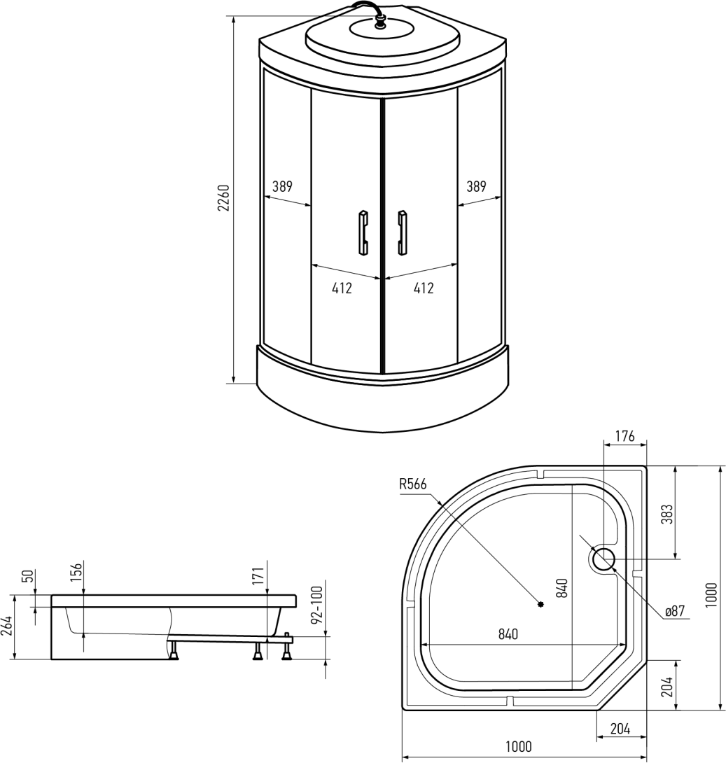 Душевая кабина Erlit ER351026-C3-RUS 100*100*226 матовое стекло