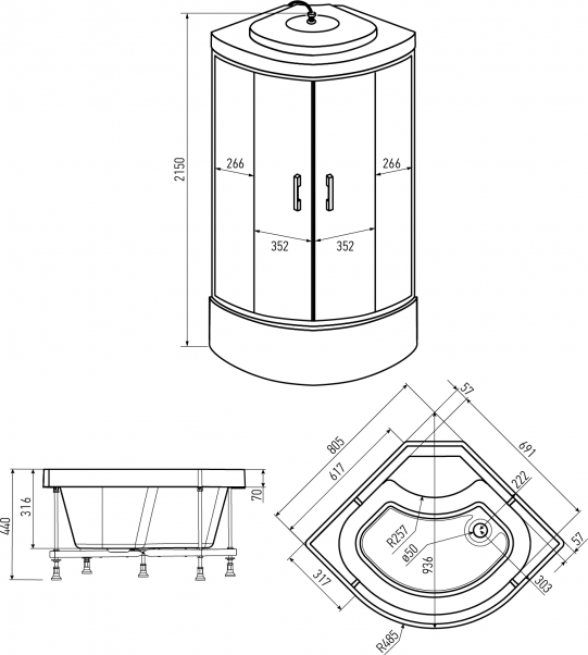 2. Сборка без герметика: в торцы стеклянных задних стенок в фабричных условиях устанавливается полый силиконовый уплотнитель, что позволяет при сборке кабины использовать герметик только при установке сифона.
