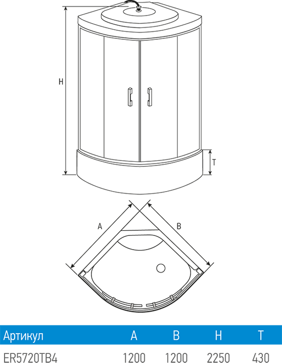 Душевая кабина ERLIT™ ER5720TB4 120*120 УТ-00130106