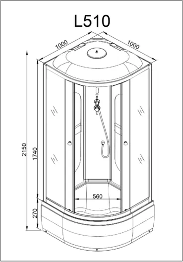 Душевая кабина Deto L510 имеет вместительное внутреннее пространство благодаря габаритным размерам 100 на 100 см. Кабина оснащена крышей. Чтобы создать максимальный комфорт для пользователя внутри закрытой душевой кабины, производитель оборудовал данную модель светодиодной подсветкой. Она расположена горизонтально вдоль верхней части задних стенок.
