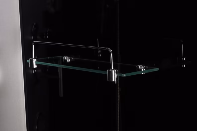 Комплектация: поддон, сифон, полочка, стенки, профиль, ролики одинарные, крыша, смеситель 2 позиции, тропический душ, дополнительная лейка.