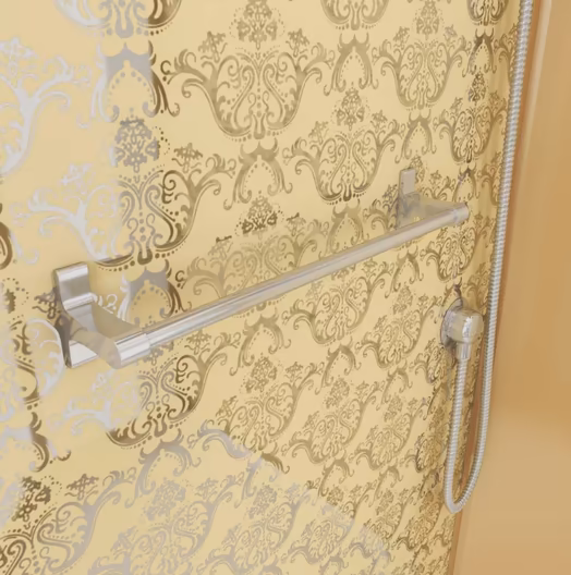 Пятиугольная душевая кабина Niagara NG-7717GBK – это отличный вариант для организации просторной душевой зоны. Модель имеет габаритные размеры 100 на 100 см. В установочном углу размещается центральная стойка из пластика. Она окрашена в золотистый цвет, как и задние стенки с вензельным рисунком, профиль и дверная ручка-скоба. Заканчивается стойка лейкой верхнего душа. Его крупные капли и мощный поток как бы обволакивают пользователя, имитируя ливень в тропиках.