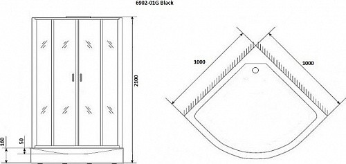 Душевая кабина Niagara Premium 100х100х210 NG-6902-01G BLACK УТ-00135482