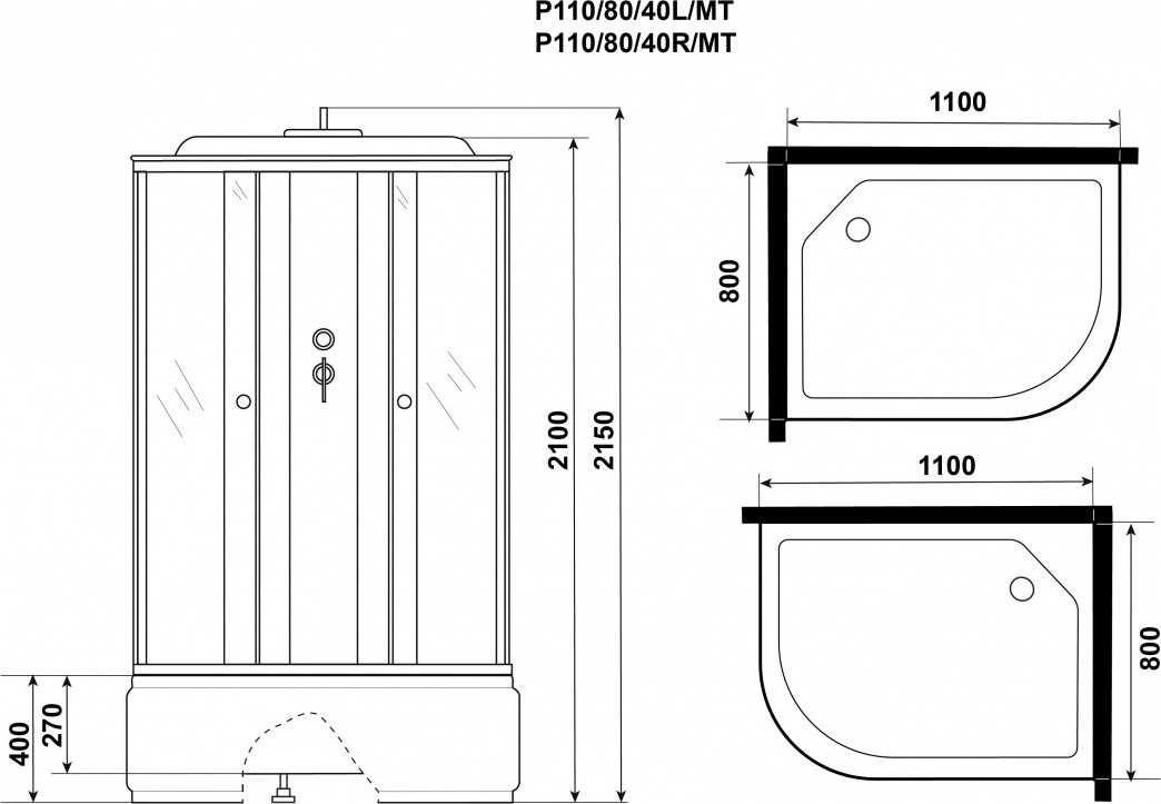 Душевая кабина Niagara Promo P110/80/40R/MT 110х80 правая УТ-00160569
