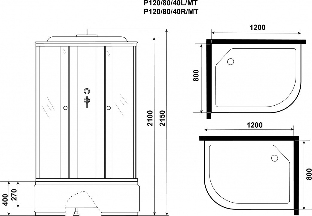 Душевая кабина Niagara Promo P120/80/40L/MT 120х80 левая УТ-00160573