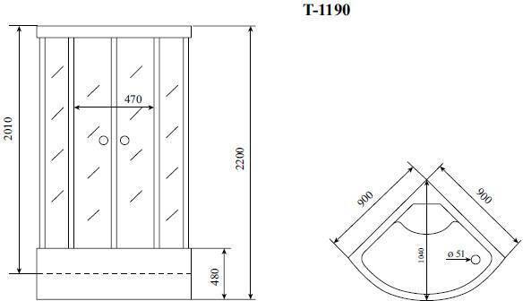 Timo T-1190 - это закрытая угловая кабина формы,с раздвижными дверьми, оборудованная системами гидромассажа, массажа ног, ручного и тропического душа. Стекла закаленные, травмобезопасные, тонированные, толщиной 5 мм. Поддон акриловый, глубокий, 48 см, в комплекте с сифоном. Профиль – алюминиевый, матовый хром.