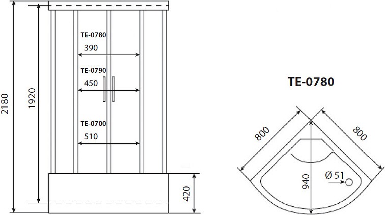 Душевая кабина Timo Eco TE-0780 Р, 80*80*218 УТ-00035215