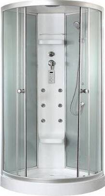 - встроенное сиденье, сифон, полки, душевой гарнитур, смеситель, пульт ДУ, зеркало