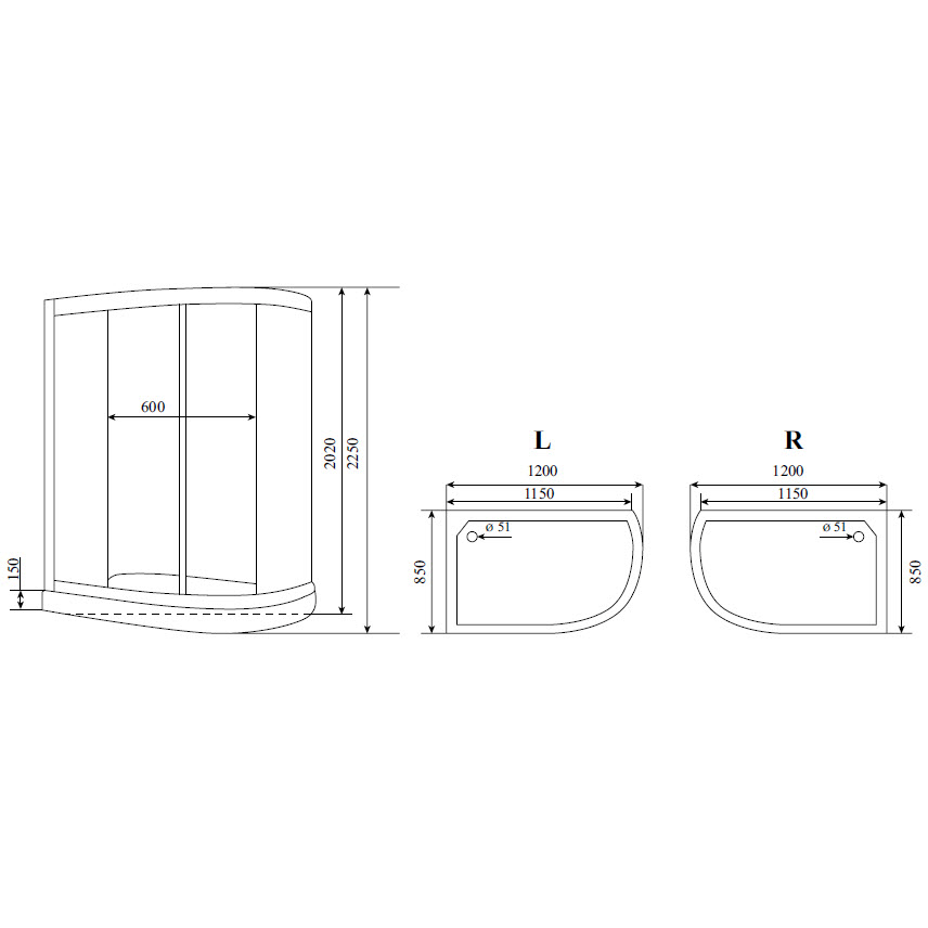 Душевая кабина Timo Standart Т-6602 Silver левосторонняя 120x85