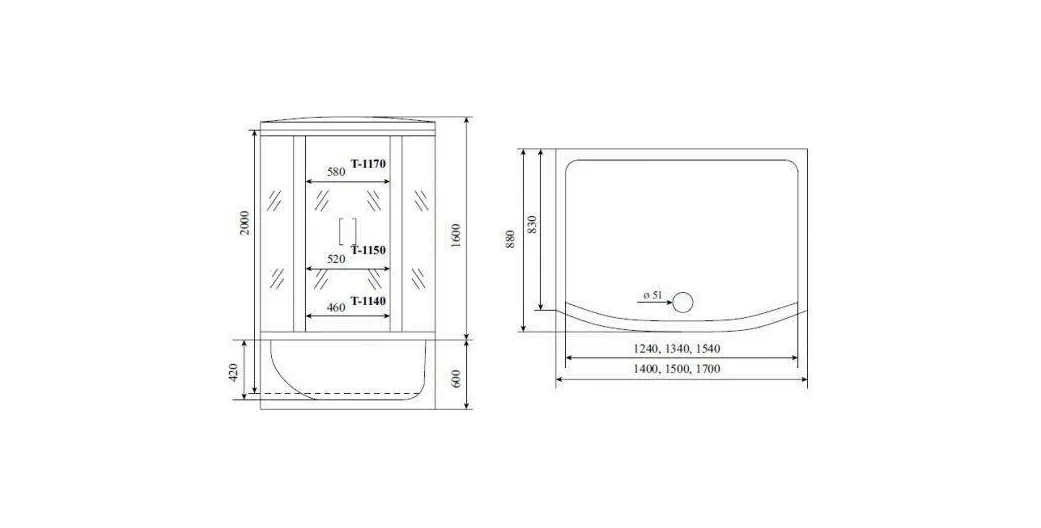 Душевая кабина Timo Standart Т-6650 Black 150x88 УТ-00062833