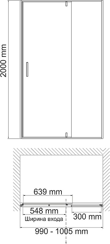 - Душевая дверь в нишу - 1 шт. Инструкция - 1 шт.
