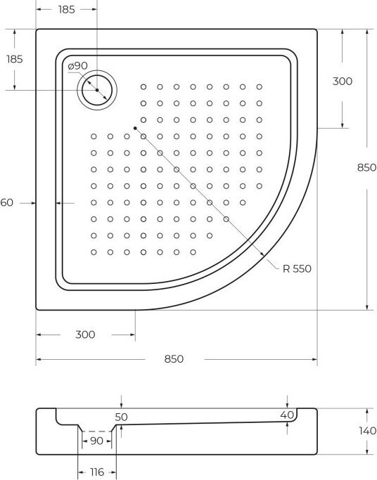 - Радиус поддона: