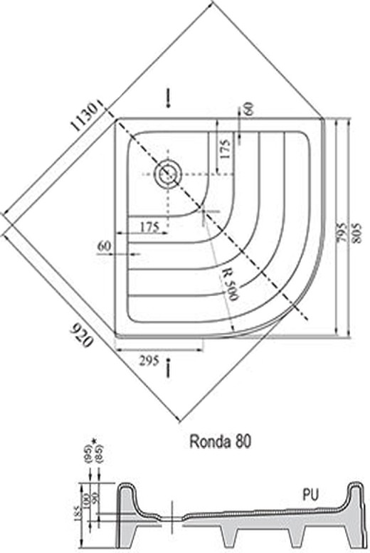 Радиус поддона: