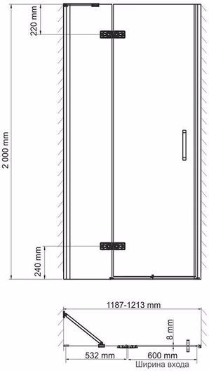 - Душевая дверь в нишу - 1 шт. Инструкция - 1 шт.