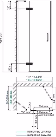 Душевой уголок Wasserkraft Aller 10H07LBlack 1200*900*2000 УТ-00043536