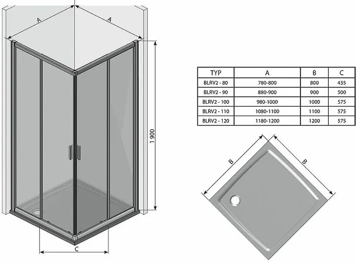 - Для комплектации душевого уголка необходимо купить 2 изделия BLRV2K!