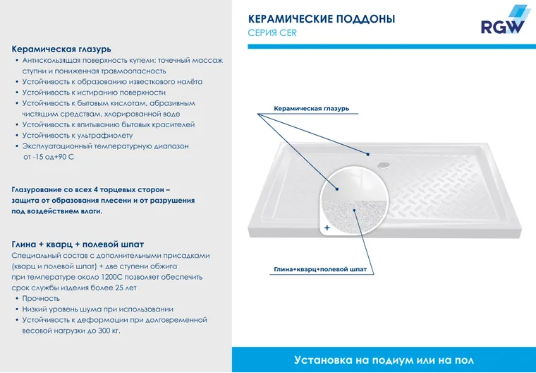 Поддон для душа RGW CER CR 75 19170384-01 80x140