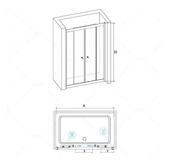 Душевая дверь раздвижная из центра, две двери. Трап или поддон приобретается отдельно.