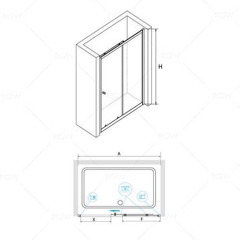 Душевая дверь раздвижная/ Трап или поддон приобретается отдельно.