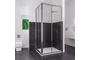 Душевой уголок квадратный, две раздвижные двери. Стекло обрамлено цельной алюминиевой рамой. Трап или поддон приобретается отдельно.