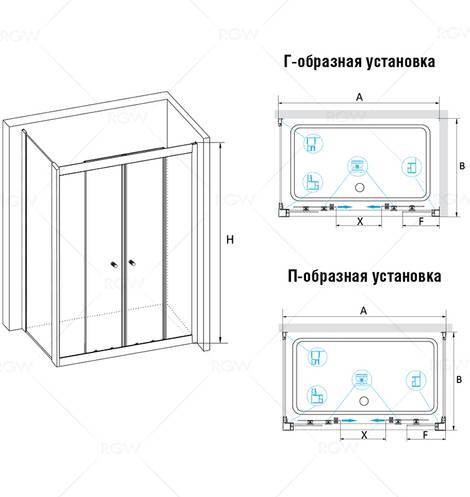 Душевой уголок прямоугольный RGW CL-43 состоит из душевой двери RGW CL-10 и боковой панели RGW Z-12. Трап или поддон приобретается отдельно.