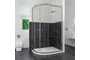 Душевой уголок ассиметричный, две раздвижные двери. Трап или поддон приобретается отдельно.
