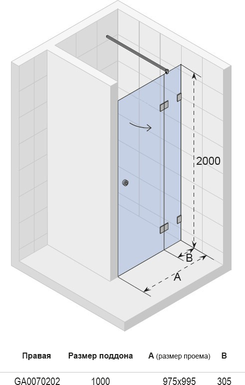 Душевая дверь Riho Artic A104 GA0070202 100x200 P правая УТ-00025424
