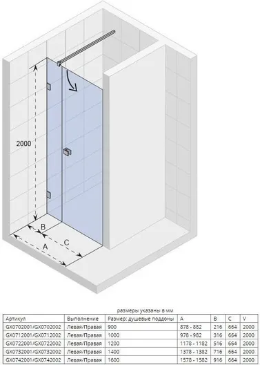 - Душевая дверь - 1 шт. Инструкция - 1 шт.