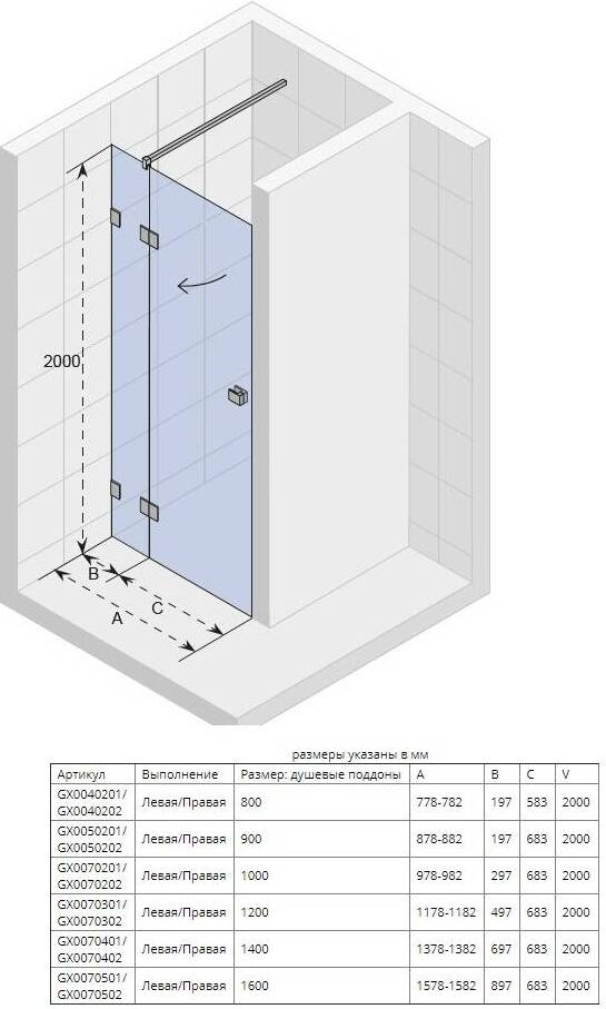- Душевая дверь - 1 шт. Инструкция - 1 шт.