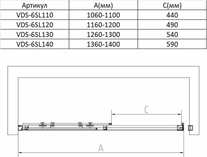 Душевая дверь в нишу Slim VDS-6SL130CL, 130 хром, стекло прозрачное УТ-00196649