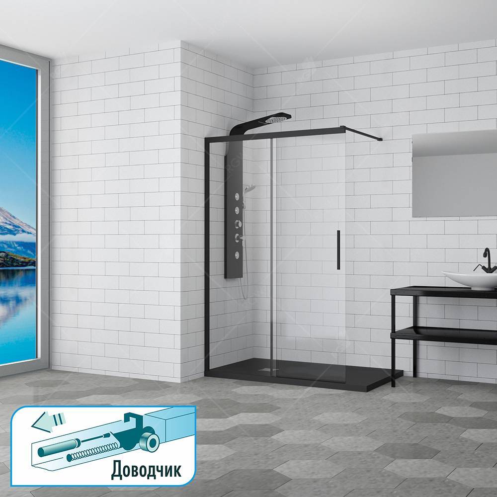 Душевая перегородка комплектуется раздвижной дверью с автодоводчиком.