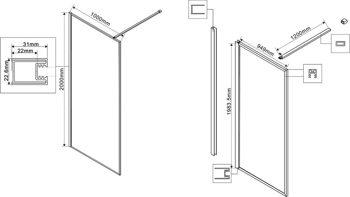 Душевая перегородка Vincea Walk-In VSW-1HP100GWBG, 100*200 золото, стекло ламинир/золотые нити