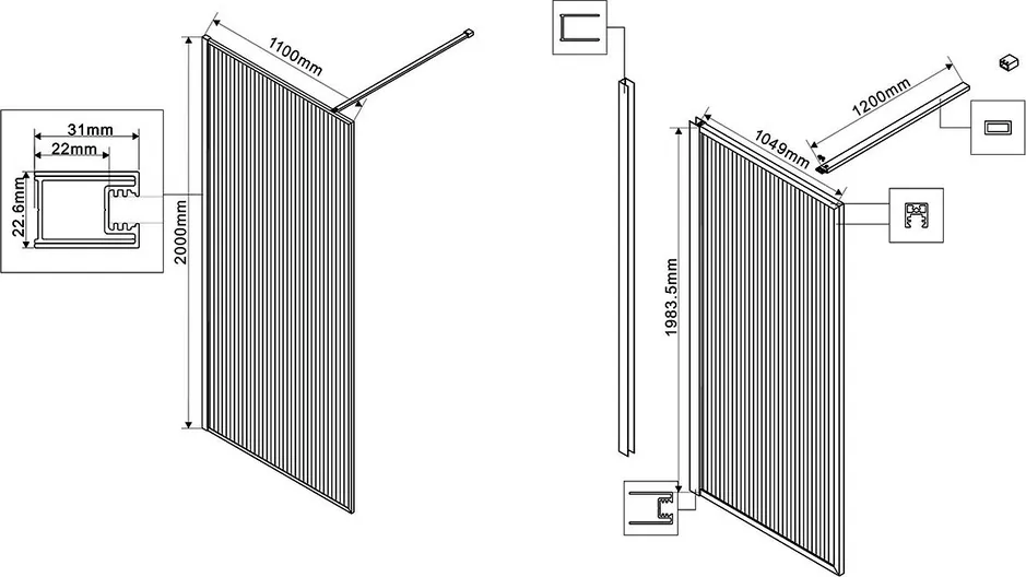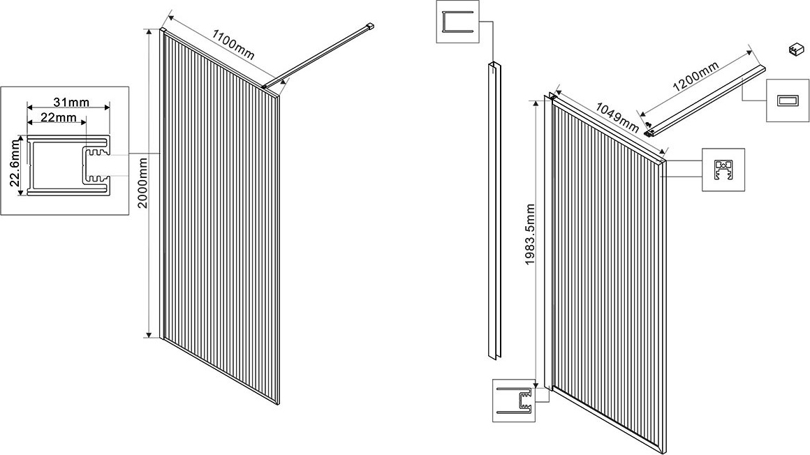 Душевая перегородка Vincea Walk-In VSW-1HP110FLB, 110*200 черный, стекло рифленое УТ-00196713