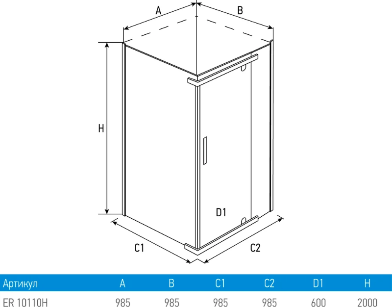Душевой уголок Erlit Comfort ER10110H-C1 100х100 профиль хром стекло прозрачное