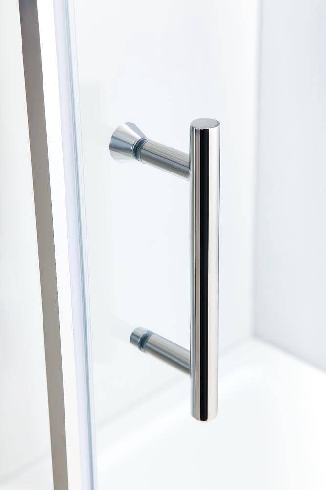 | • Закаленное стекло Pilkington OptiWhite™ • Хромированный, анодированный алюминиевый профиль • Толщина стекла 6 мм • Двойные металлические ролики с быстросъемным механизмом • Раздвижные двери • Допуск на установку 20 мм • Металлические ручки 200 мм |